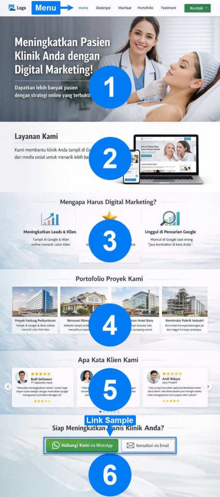- Setiap nomor pada gambar menandakan setiap bagian website.
